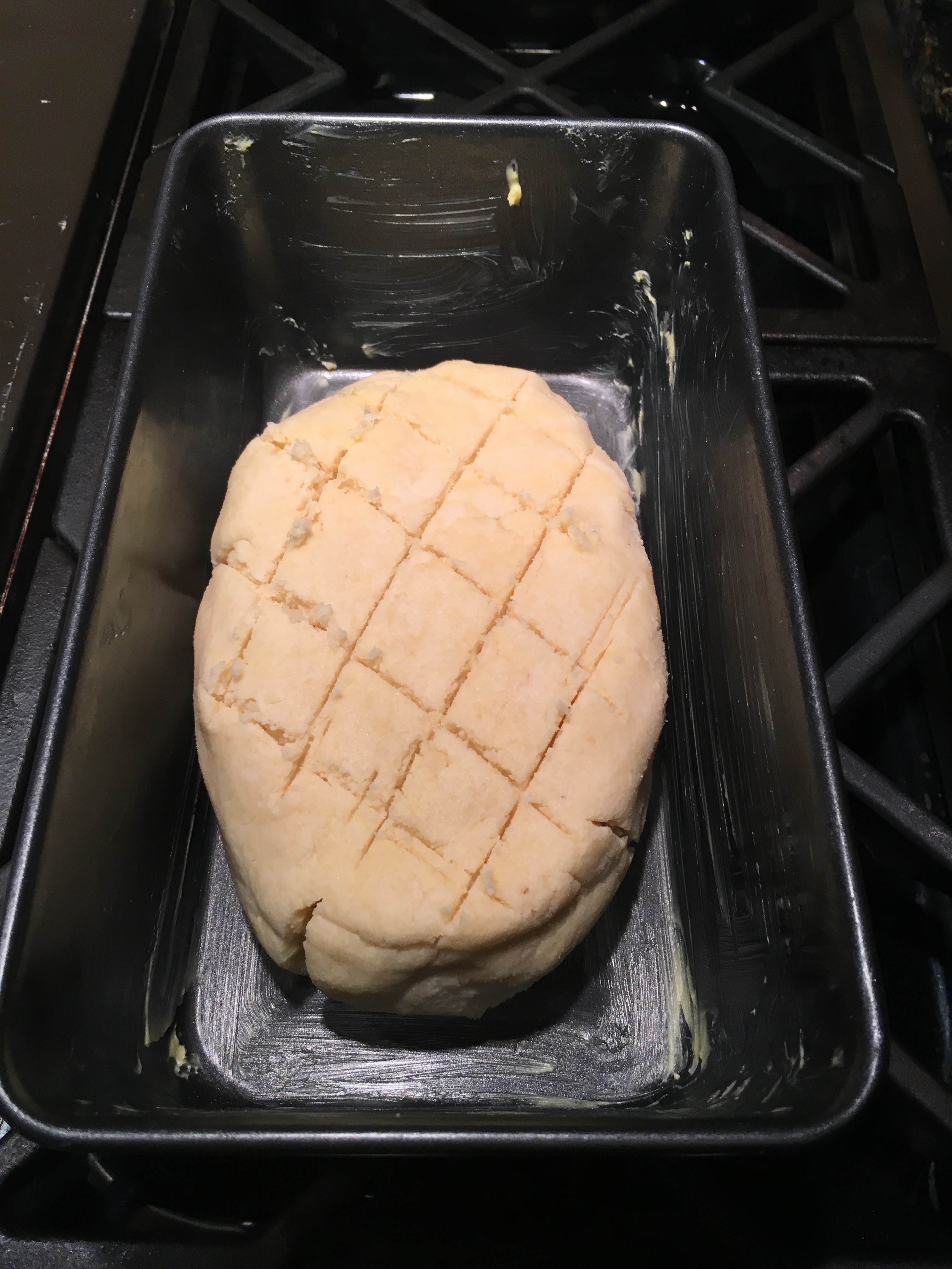Place dough in your bread pan and cook for 50-55 minutes or until golden brown.