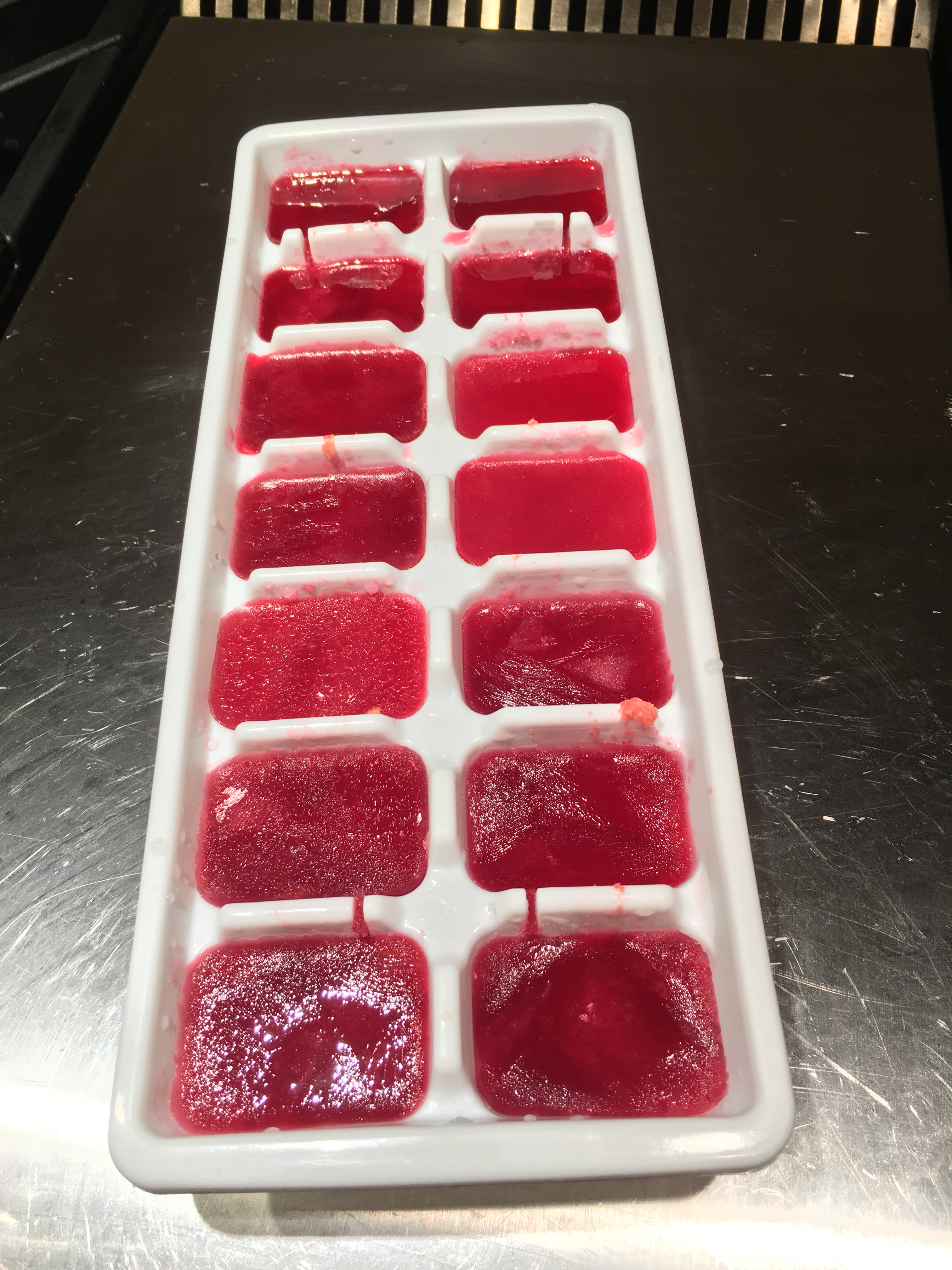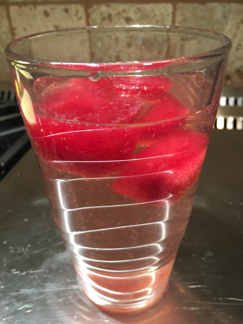 Place 3-4 cubes in a cup and fill with San Pellegrino.