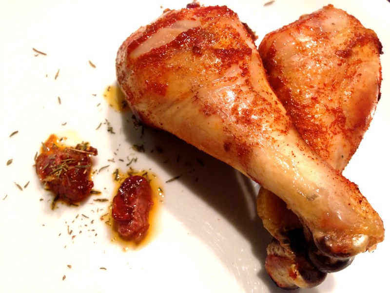 Sprinkle the chicken exterior with two teaspoons of thyme spice.