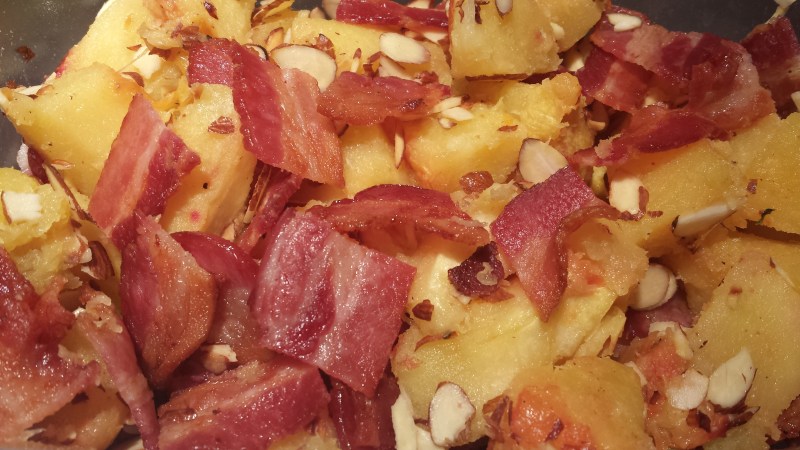 Mix your bacon, almonds and cooked squash together and you’re ready to eat.